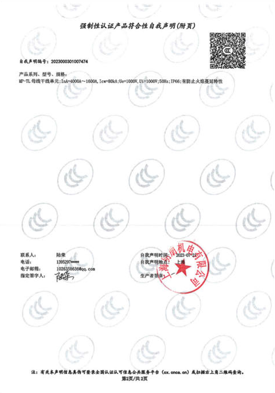 MP-TL 母线干线单元自我声明