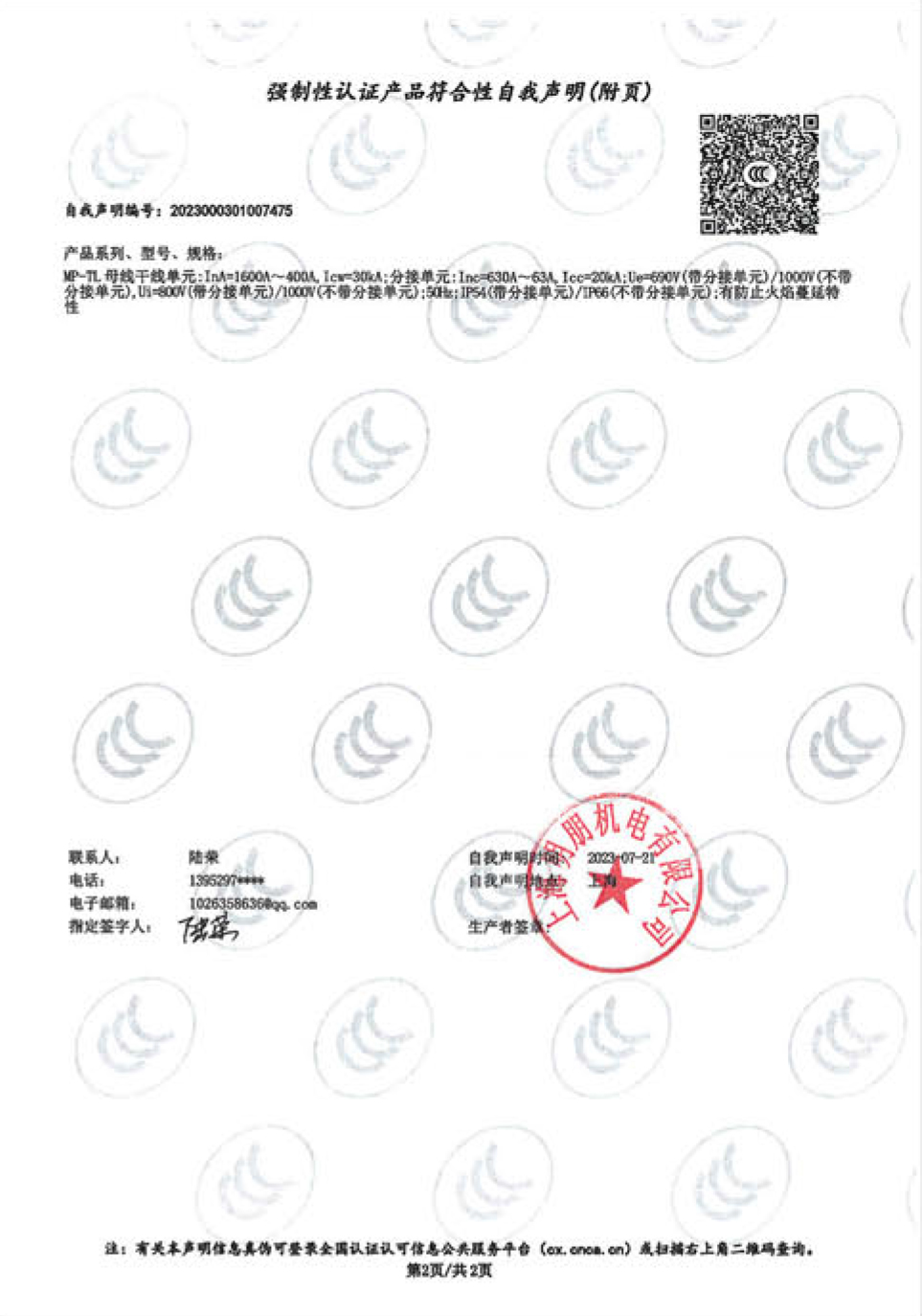 MP-TL铜铝复合母线槽自我声明