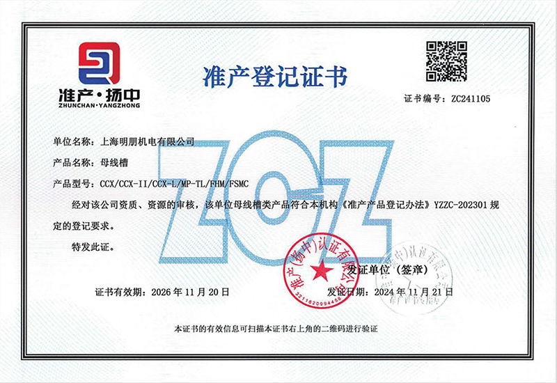 母线槽准产登记证书