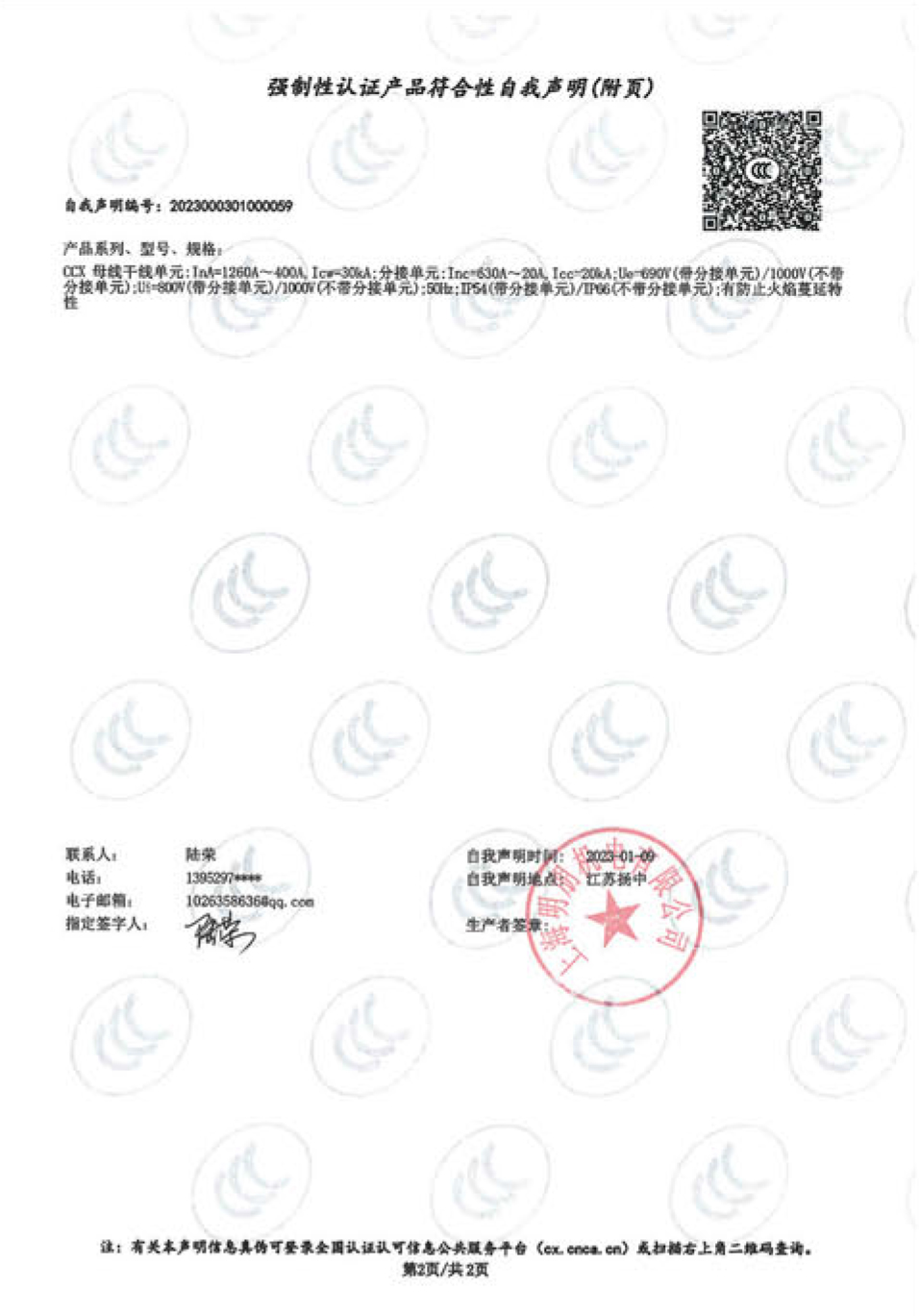 CCX母线槽自我声明